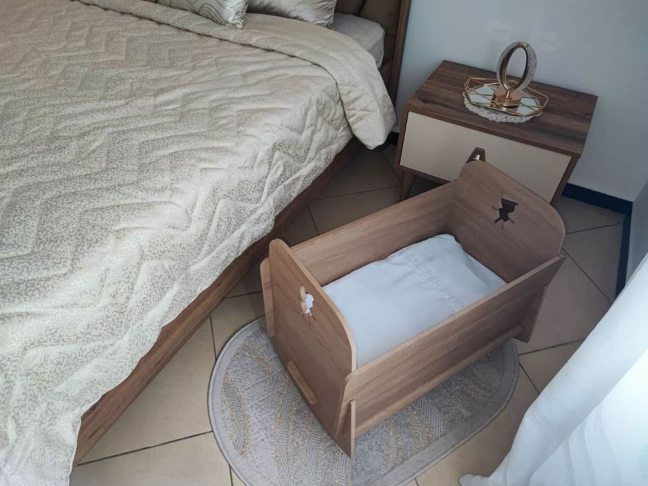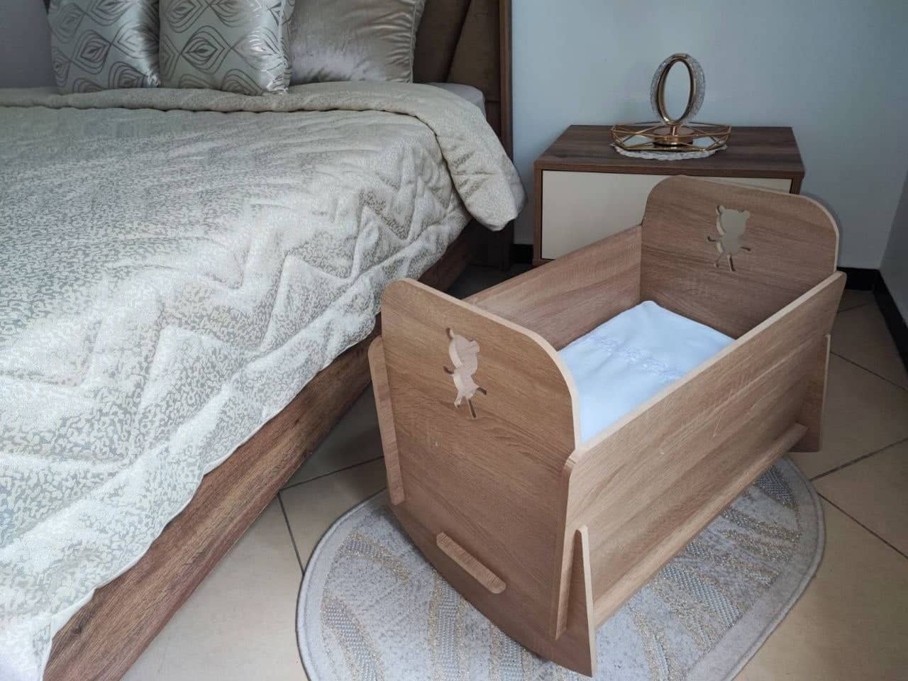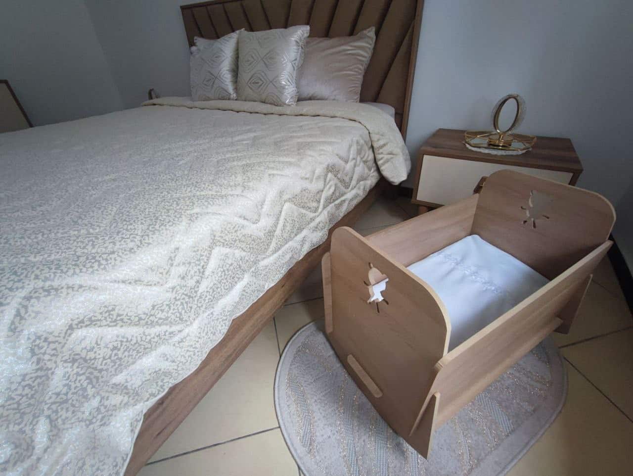 نقدم لكم سرير الطفل الخشبي الجميل والمصمم بحب وعناية لتوفير الراحة القصوى لصغيركم. مصنوع من مواد ممتازة ومستدامة، يوفر هذا السرير مأوى آمن ومريح لطفلكم ليسترخي ويحلم بسلام. تصميمه الخالد وبناؤه المتين يجعله إضافة ثمينة لأي حضانة. قدموا لطفلكم هدية الأمان والأناقة مع سرير الطفل الخشبي الرائع الخاص بنا.