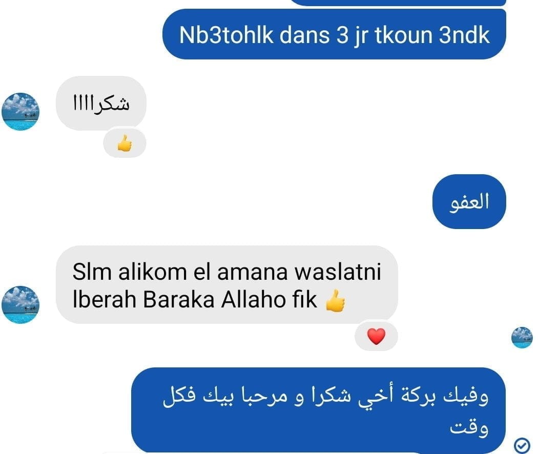 ( اسمك . ولاية . بلدية . رقم هاتف)
